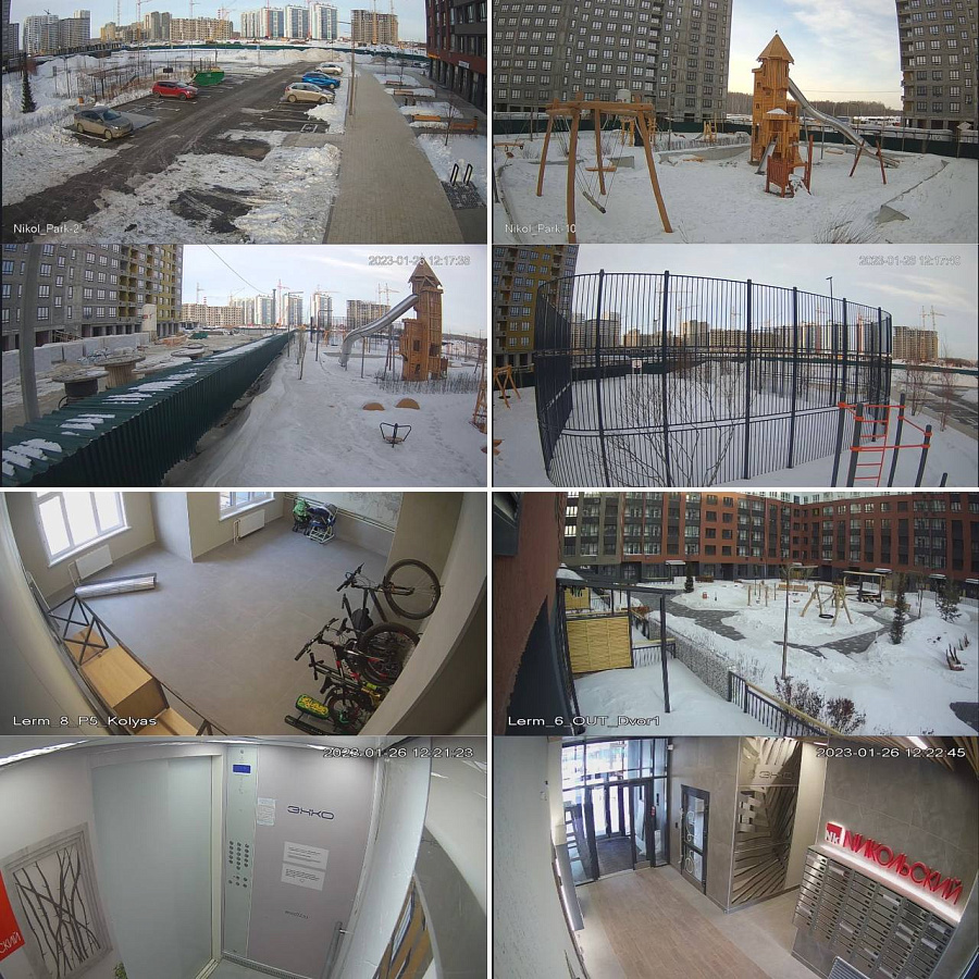 В результате система видеонаблюдения охватила периметр домов, внутренний двор, входы в подъезды, холлы и коридоры, кабины лифтов, лестничные клетки, колясочные, парковки, детскую площадку, проезды.
