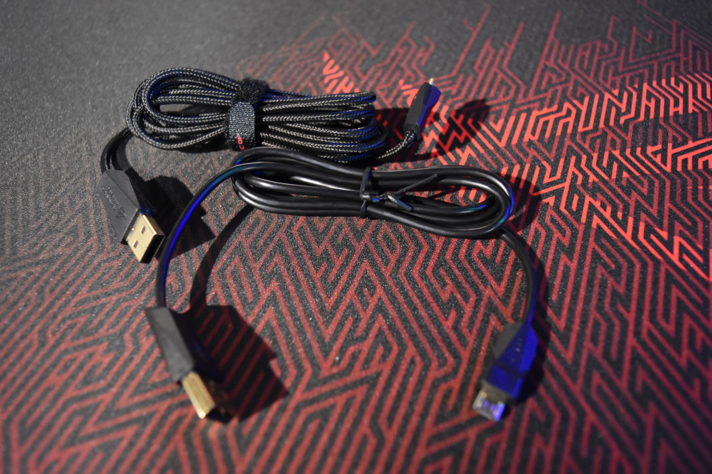 Мышь имеет два режима работы – проводной и беспроводной. Для работы без провода, Spatha подключается к док-станции, которая соединяется с компьютером по USB-кабелю. Объем встроенного аккумулятора мышки – 1000 мАч. Этого должно хватить примерно на сутки беспрерывного пользования. Разумеется, навряд ли кто-то будет использовать мышь целые сутки без перерыва, поэтому время работы ASUS ROG Spatha в беспроводном режиме составит примерно 4-5 дней по ~ 5-6 часов в день. Много это или мало – решать только Вам, но в любом случае, никто не запрещает подключить мышь к ПК самым обычным способом – с помощью 2-метрового провода в тканевой оплетке.