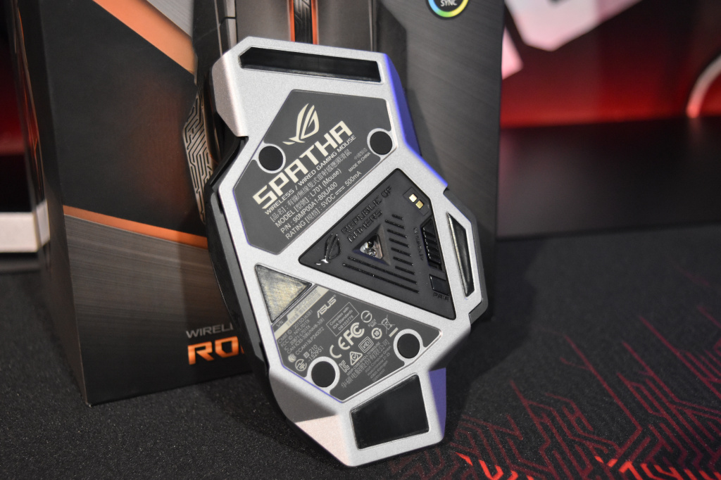 ASUS ROG Spatha, как и любой современный игровой грызун премиум-класса имеет 16,8 млн. RGB-подсветку. Во всей продукции серии ROG используется подсветка ASUS AURA, которая синхронизуется с другими устройствами серии ROG, поэтому если у Вас есть, к примеру, видеокарта или материнская плата линейки ASUS ROG, то с помощью софта можно настроить, чтобы и мышь подсвечивалась синхронно с другой продукцией серии ROG. Spatha имеет 3 независимых зоны подсветки – логотип Republic of Gamers «на спине» устройства, колесико, а также блок с боковыми кнопками. На каждую из зон можно установить различный цвет, частоту и тип подсветки, коих тут аж целых 6 - Static, Breathing, Trigger, Random, Cycling и Battery. В режиме «Battery», к слову, цвет меняется в зависимости от полноты заряда батареи.